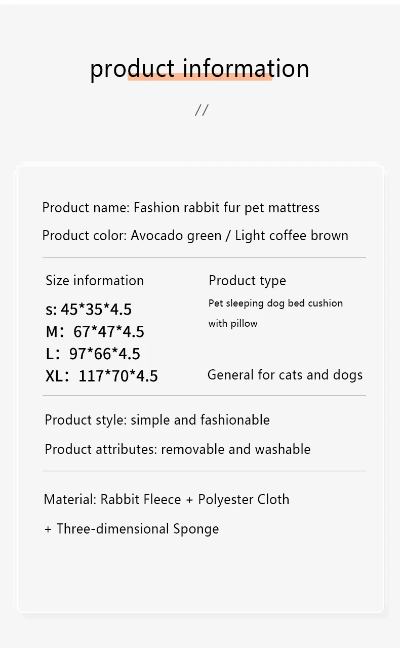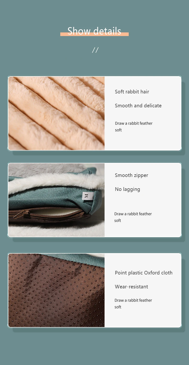 Cover Design:Rabbit wool fabric cover.tear resistant cover.Removable cover is machine washable.Soft to